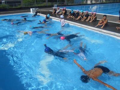 7月23日(水) 夏の日差しがさんさんと降り注ぐ中、1年生の元気なみんながプールで頑張っていました。