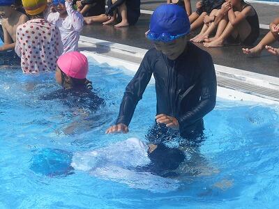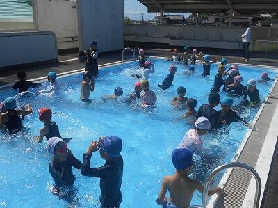 いろんな遊びに親しみながら、潜ったり、浮いたりと水泳の基礎となる力がしっかりと育っているようです。来週はいよいよ最後のプール、夏休みも目の前です。みんな、休み中にはお家の人に上手になったところをたくさん見てもらおうね。