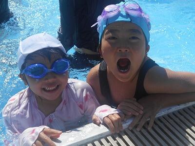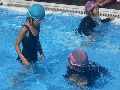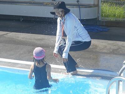 入水の仕方も約束を守って、とっても上手です。プールサイドに腰掛けて静かに入ります。