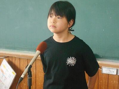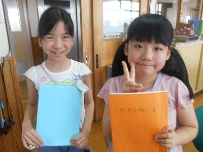 写真は代表作文発表をしてくれた、2年生と3年生のお友達です。二人は1学期にがんばったことを堂々と発表しました。あいさつや靴ならべ、習字や水泳、国語や算数の学習などがんばったことがたくさんありました。作文から1学期の生活がとても充実していたことがよく分かりました。二人の発表が終わると全校の教室から拍手の音が職員室まで聞こえてきました。放送を聞いているみんなもそれぞれにがんばったことを振り返ったことでしょう。1学期しっかりと成長できた東海っ子のみんなです。
