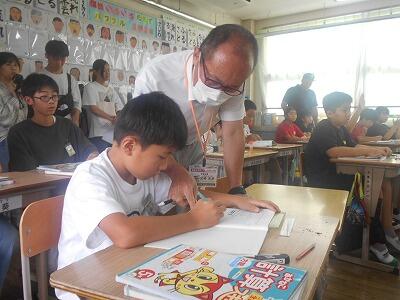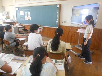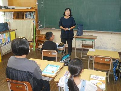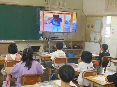 放送の後は、学級でもご挨拶いただきました。「みんなは先生の最後の教え子です。これからもずっと応援しています。」先生の言葉を聞く子ども達はちょっぴり悲しそうでした。これからもがんばって、先生によい知らせをたくさん届けられるといいですね。