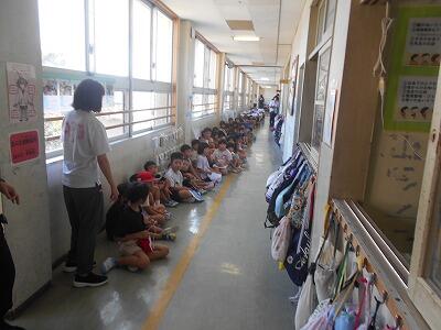 訓練は事前に児童に知らせていない抜き打ちの形で行いましたが、子ども達は放送や無線機、先生の指示等をしっかりと聞いて、迅速に身を守る行動をとることができました。
