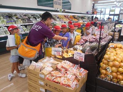 9月17日(水) 3年生が社会科の学習でスーパーマケットの見学を行いました。訪れたのはマルイチ大門店です。「あいさつをしっかりすること」「他のお客さんの邪魔にならないこと」お店の方との約束をしっかりと確認し、3つのグループに分かれていざ店内に。