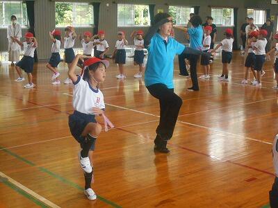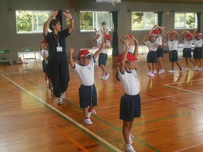 1年生は学年体育でした。延岡市レクリェーション協会の方々に来ていただき、ばんば踊りを親子で習いました。「やっとせぇ~え、やっとせ!」「サイサイ!」のおなじみの曲が流れると、なんだかとっても楽しい気持ちになってくるのはやはり延岡人の血でしょうか? 先生の姿を見ながら一生懸命に覚える姿、とってもナイスな1年生です!