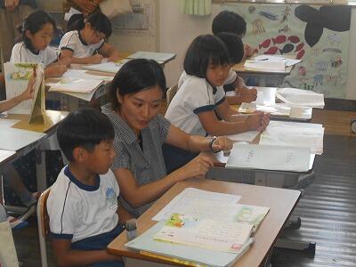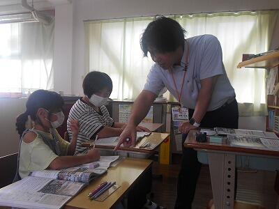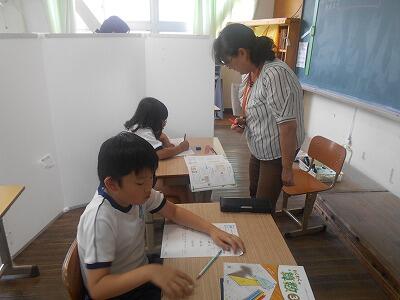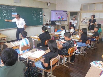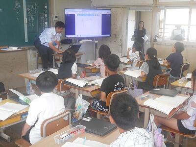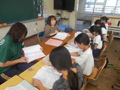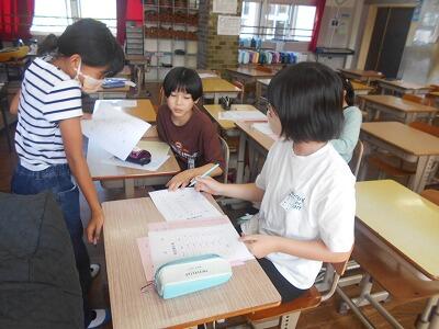 5年1組は算数、最大公約数を使った問題に挑戦です。二つの数の公約数を見つけていく手順をしっかりと確認しながら解いていました。5年生になると算数も難しくなってきますね。先生の話をいつも集中して聞く5年生のよさをこれからも継続してがんばってほしいです。