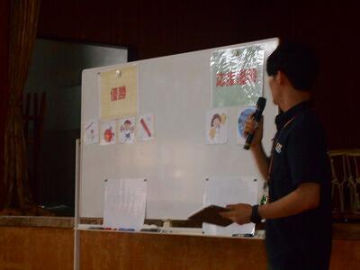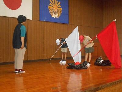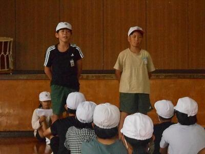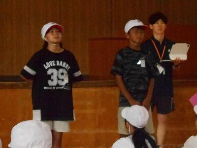 体育主任の先生からは「優勝」「応援賞」をとるために必要なこと、校長先生からは団結するために大切な3つのこと ~全力をつくす・温かい心で励まし合う・責任をもって取り組む~ についての話がありました。ふだんからの意識をしっかりともって両団ともがんばってほしいです。