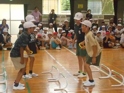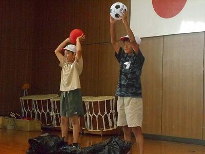 次はA団、B団がゲームをして赤ボール、白ボールが入った袋を選ぶ順番を決めました。まさに運動会前哨戦の盛り上がりです。どちらの団からも応援の声が飛び交いました。