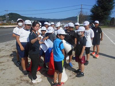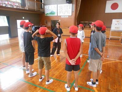 結団式が終わったら、団長の先生のもと、さっそく今日の振り返りです。みんなの目はとても真剣でした。次の目標もしっかりと確認できました。