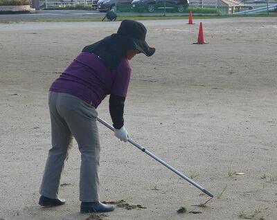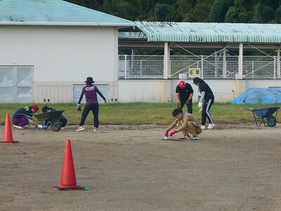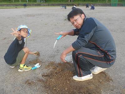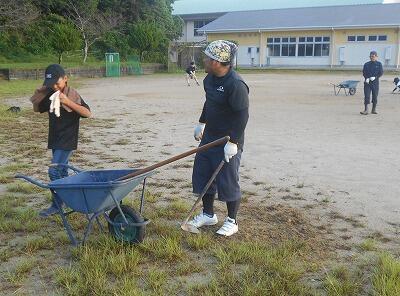 朝早くから、保護者の皆様には、運動場周りの草刈りや、フィールド内の草抜き、砂入れ・整地作業などに、暑い中、熱心に取り組んでいただきました。