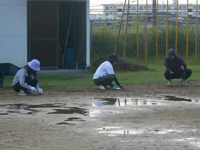 最初は曇り空だったので、日が差さなくていいなと思っていたら、途中から晴れ渡ってきて、なかなかのハードワークになりましたが、保護者の皆さん、お手伝いに来てくれた子ども達、先生方はそんな暑さにも負けずに、大粒の汗をかきながら、せっせと作業を進めていました。さすがチーム東海の面々は少々のことではへこたれませんね。