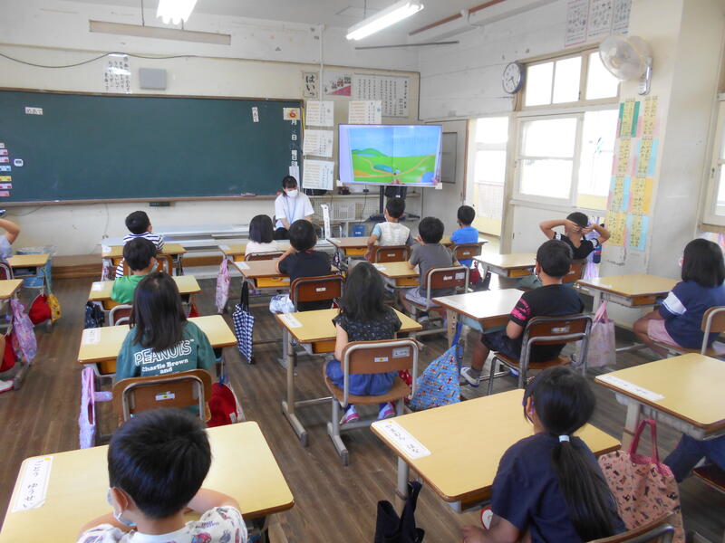 本日は、外国語指導助手のアナ・メイソン先生に訪問していただき、外国語の授業を行いました。6年生の授業では、英語で自分の行きたい国の紹介をし、みんなの紹介を聞いた後、行きたい国を学級で選ぶ授業を行っていました。子ども達は意欲的に授業にとり組んでいました。