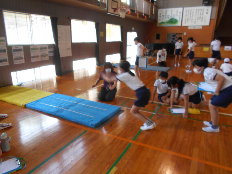 本校では、5月から体力テストを行っています。今日は、2校時から4校時に、全学年で、立ち幅跳び・反復横跳び・上体起こし・長座体前屈にとり組みました。子ども達は自分の目標記録に向け、各種目に一生懸命チャレンジしていました。体力もこれから子ども達が生きていくうえで重要な力です。外遊びの減少や車社会による運動不足は子どもの体力低下の要因のひとつとなっています。今回の結果をもとに、学校教育全体で体力の向上にも取り組んでいきたいと思います。体力向上につきましても、御家庭での御協力をお願いいたします。