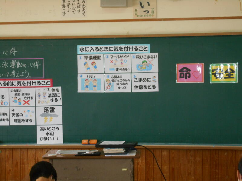 6月27日(月)から始まる水泳の授業に向け、今週、全学級で「水泳運動の心得に関する指導」を行います。ねらいは、水泳運動の心得を適切に指導し、水の事故を未然に防ぐことや自他の命を守る行動をとる態度を育てることです。授業では、安全面での心得や、新型コロナウイルス感染症対策に関する約束事項、水難事故防止に関わる内容を学習します。児童にとって楽しい水泳の授業になるよう取り組んでまいりたいと思います。