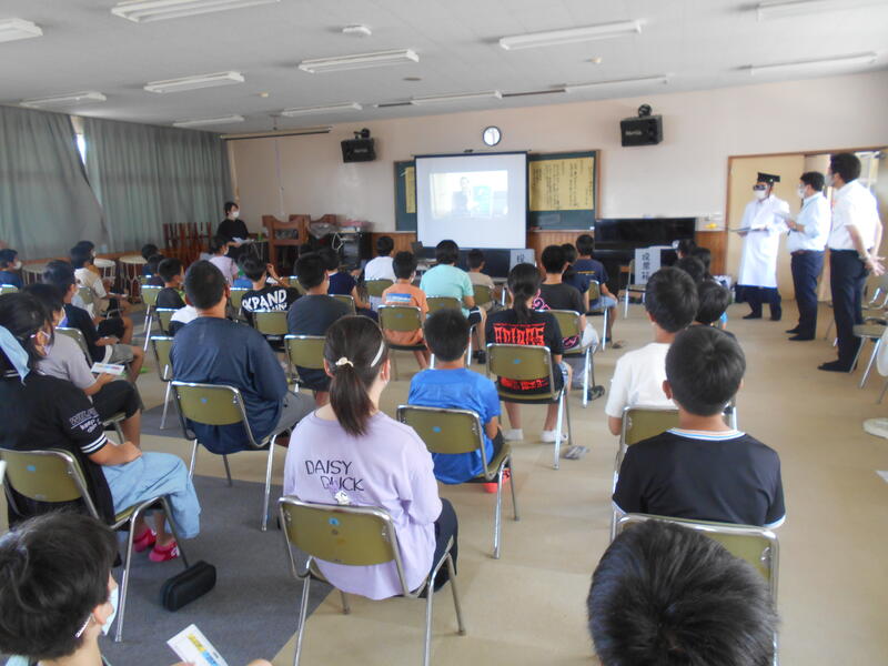 本日は、6年生を対象に、宮崎県北法人会延岡支部青年部会の皆様にお越しいただき、「租税教室」を行いました。教室では、消費税などの身近な税金の使われ方やしくみについて、消費税は子ども・子育てや医療・介護等で使われ、使い道は国会で決まることなど、わかりやすく説明していただきました。また、それぞれ別の税金の使い道を公約にした2人の立候補者を選ぶ模擬選挙も実施されていました。教室には、ケーブルメディアワイワイの方も取材に来られていました。6年生には、今日学んだことを今後に生かしてほしいと思います。