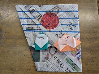 折り紙をもってニコニコ笑顔のツーショットの兄弟も、「おいしい!!」という感想を聞かせてくれました。