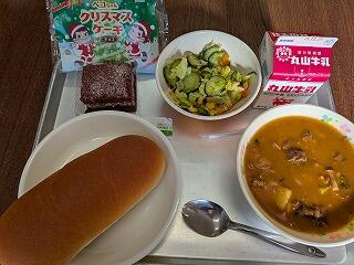 終業式を前にワクワク感満載のクリスマスメニューでした。高級感溢れるクリスマスケーキのデザートに歓声が!!
