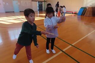 2年生の遊び方の説明がとても上手で、1年生もおもいっきり楽しんでいます。