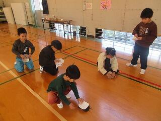 もちつきは、まず5年生が行いました。地域の方々のアドバイスを素直に聞き頑張ろうとしました。しかし、杵に振り回されてまるでダンスを踊っているような子がいたり、へっぴり腰で、ぎっくり腰をやるかもと心配になったりする子がいたり・・・。おいしいおもちになるには、こんなにも楽しい過程を踏めるなんて幸せな時間になること間違いなしです!!