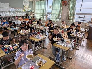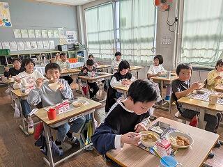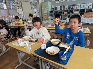 物価高騰の中で、大変苦しい台所状況の最中、予算から生産、運搬、調理と給食に関わってくださる皆様のおかげです。子どもたちの笑顔が弾けました。