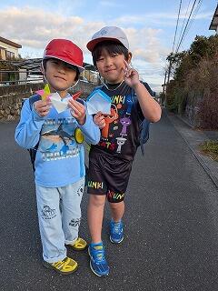 今朝の登校時に、今日のお楽しみ会のために作ったプレゼントを大事そうにもってきた二人。その姿がかわいらしくて思わず写真に収めたところです。
