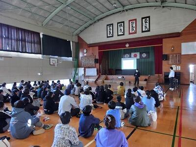 講演後は「もともと延岡のことが好きだったけど、今日、新しくいろんなことを知って、ますます好きになりました。」「海も山も一級だなんて、延岡ってすごい!」「沖縄にいない生き物が延岡にいるなんてすごいと思った。」「延岡に住んでいることを誇りにしたい。」などの感想が聞かれ、延岡の魅力を再発見できたようです。また、「美しい自然を守るために自分のできることをしよう。」と高橋さんから投げかけられたみんなは、「プラスチックゴミを減らしたい。」「エアコンの設定温度を調節しようと思う。」などさっそく取り組めることを考えていました。