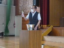9月30日(金)の全校朝会は、甲斐先生のお話でした。甲斐先生のお話のテーマは、本校の三本の気「心が元気」「根気」「やる気」の中の「根気」でした。甲斐先生のお話は、自分が小学生のころから14年間根気強くがんばってきた、新体操についてでした。