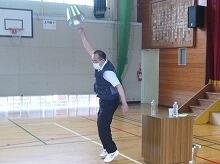 檜室先生(体育振興指導教員)によるマット運動の指導