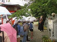 那智の滝の近くには、「如意輪寺」というお寺があります。そこで和尚さんに如意輪寺のことや那智の滝のことについて、くわしいお話を聞くことができました。また、お寺にある大きな鐘をついたり、お賽銭を入れて仏様にお願いをしたりしました。