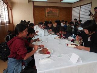 その後、全員元気にテーブルマナーの指導を受けた後にナイフとフォークを使って食事をいただいたそうです。
