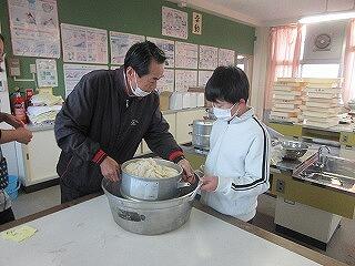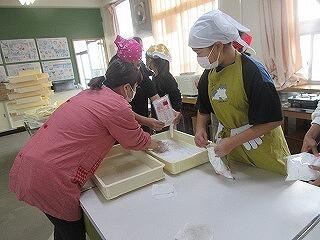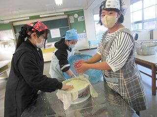 前日から、餅米の計量や、餅米を水につけておく作業などを手伝いに保護者や地域の方々が来てくださいました。