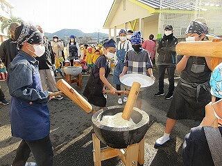 全校で行ったもちつき大会。5年生が田植えをし、収穫をした餅米で今年も行うことができました。