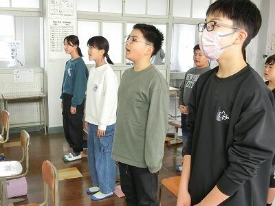 最初にドイツ語の歌詞の意味を発表しました。難しい言葉もたくさんありましたが、5・6年のみんなは覚えて、歌に込められた想いを考えながら歌うことができました。