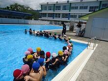 翌日の7月4日(火)は、晴れていましたので、5・6年生と、1・2年生のプール開きをしました。久しぶりのプールでみんな喜びの気持ちを抑えきれませんが、先生のお話をしっかり聞いて安全に気をつけることができました。