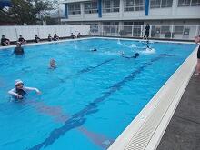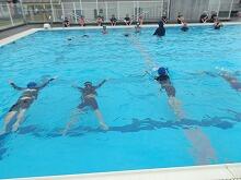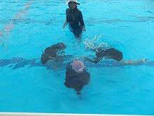 5・6年生は、クロールや平泳ぎでどんどん泳ぎます。25Mもすいすいと泳げるお友達もいます。1・2年生は、水の中を歩いたり、体を沈めたりと水に慣れていきました。水中ジャンケンで目を開ける練習もします。