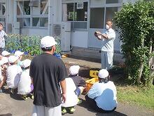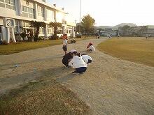 「先生、職員玄関を開けてください。」何をするのかと思いましたら、職員玄関の草取り鎌を取りに来ました。そして、運動場に向かうと、黙々と草取りをしています。運動会が終わってしばらくたっていますが、運動場がきれいに保たれているのは、子どもたちの草取りのおかげです。