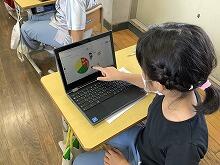 6年生は、国語の「私たちにできること」の授業です。SDGs(持続可能な開発目標)を意識し、自然環境を守るために、これから自分の身近でどのようなことに取り組んだらよいかということを考え、全体へ提案するという学習でした。提案内容がよく伝わるようにするため、プレゼン資料をロイロノートにまとめて発表していきました。
