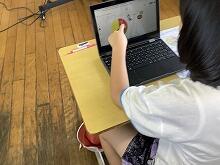 5年生は、家庭科の「ソーイング~小物づくりをしよう~」の授業です。ボタン付きの小物を縫います。玉結び、玉留め、なみ縫い、ボタン付けなど裁縫の基本が大事です。この基本をクロームブックの解説資料で確かめながら裁縫に取り組みます。また、お家の方に裁縫のお手伝いをしていただき、大変助かりました。