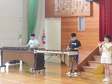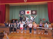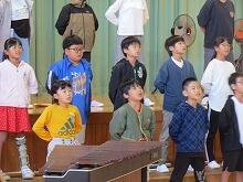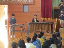 最後には、「茶色の小びん」の合奏を披露しました。使用した楽器は、マリンバ、ピアノ、鍵盤ハーモニカ、リコーダーです。息の合った演奏がお見事でした。