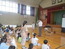 校長先生のお話は、「夏休みを成功させるには、どうすればよいでしょう。」という問いかけから始まりました。ヒントは、「コツが二つあります。」ということです。その心は、「コツコツ取り組むこと」です。毎日、コツコツと取り組むことで充実した夏休みが過ごせるということです。上手になりたいという願いは、誰もが持っていますが、なかなか上手にならないものです。しかしあきらめずに、努力を続けていると突然できるようになるということがあります。コツコツと続けた努力は、まるで風船の中の空気のように体の中にたまっていくのです。そして、ある日突然はじけ、みるみる上達していくものなのです。一日一日を大切にして、努力を重ねることの大切さを感じたことでしょう。