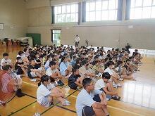 その後、安全担当の山下先生や生徒指導主事の甲斐先生、図書主任の陣先生、養護教諭の戸髙先生から夏休みに気をつけること、ぜひ取り組んでほしいことなどお話がありました。大切な命を守る夏休みにして、2学期の始業の日に全員の元気な顔が見られることを願います。