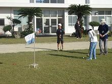 しかし、地域の方はさすがです。ニアピンやホールインワンの方がたくさんいらっしゃいます。やはり、日頃からグラウンドゴルフに親しんでおられるからでしょう。慣れない子どもたちも、地域の方からていねいに教えていただいたので、みるみると上達していって、グラウンドゴルフの楽しさがしっかり伝わっていました。本当にありがとうございました。