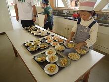 班ごとに協力しながら、細切りやみじん切りにしたメンマに調味料を和えていきます。味見を繰り返しながら、納得できる味にしていくのにかなりの時間がかかっていました。メンマの味が決まったら、きれいに皿に盛り付けていきました。