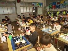 昨年度までは、給食を食べずに交流学習が終わっていましたが、本年度は、給食も一緒に食べました。グループになって少しお話をしながら、楽しく給食を食べました。