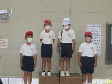 表現集会の後で、空手や陸上の大会、読書感想画に入賞したお友達の表彰がありました。また、体力テストでA判定だったお友達の表彰もありました。