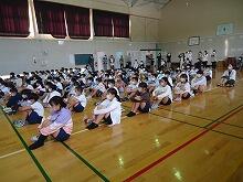 9月26日(月)は雨が降ってしまい、予定していた運動会に向けての全校体育は運動場でできませんでした。体育館でできる内容で全校体育を実施しました。運動会に向けての練習の1回目ということで、三連休明けでしたが、とても引き締まった表情でがんばっていました。
