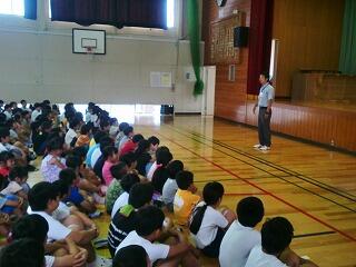 今朝は全校朝会があり、校長の話に続いて、今月担当と