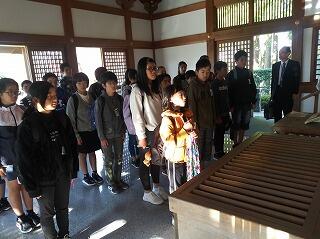 2日目最初の見学先、知覧特攻平和会館に着きました。みんなで折った千羽鶴を奉納した後、館内見学をとおして平和の尊さを学んだようです。