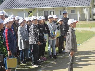 今朝の体育集会は持久走練習です。少々冷え込みましたが、子どもたちは体育服で元気に運動場を周回しました。