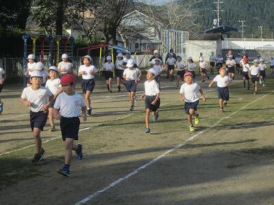 ほどよい気温で無風の中、子どもたちは元気に運動場を周回しました。全部で6回ほど計画されていますが、それぞれの持久力にあわせて頑張ってほしいですね。
