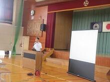 その後、安全担当の山下先生や生徒指導主事の甲斐先生、図書主任の陣先生、養護教諭の戸髙先生から夏休みに気をつけること、ぜひ取り組んでほしいことなどお話がありました。大切な命を守る夏休みにして、2学期の始業の日に全員の元気な顔が見られることを願います。